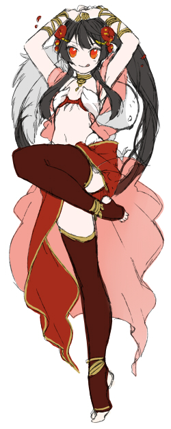 | 人物設定・容姿 | ○人物設定: スタージル伯爵(モルガノ財閥)の甥アルフレッド・モルガノ[世界設定掲示板参照]お抱えの奴隷格闘士です。 新王国歴508年、シルイド王国の出身で、母はメルフィンの出生時に亡くなっています。 シルイド王国に古くから伝わる古流格闘術の継承者だった父から格闘術の基礎を教わりながら育てられましたが、 新王国歴515年、父親が何者かに暗殺されてしまい、まだ幼かったメルフィンは闘技会の興業を生業とする 奴隷商人の一座に引き取られて一座と共にロンドワナ大陸を転々としてきました。 新王国歴520年、貿易都市ワイルドベリーで開催された冬の闘技会で負けて止めを刺されようとしていたときに、 見物していた闘技狂いで知られるアルフレッドの気まぐれで助命され、奴隷商人から買い上げられました。 その後しばらくワイルドベリーの伯爵家別邸でお抱えの格闘士として育成されていましたが、 新王国歴523年、アルフレッドがモルガノ財閥の経営陣の一人として自由都市ニューゲートに 赴任することになり、身辺護衛役として連れてこられました。 現在の格闘術の師匠はアルフレッドお抱えのリルドラケンの引退格闘士クローヴィス[世界設定掲示板参照]で、 闘技会が開催されていないときはアルフレッドの屋敷内に併設されている練武場で格闘の技を鍛錬し、 夜はアルフレッドの護衛を兼ねて貴族や商人の社交会に随伴させられたりしています。 [→ 一般技能: ノーブル技能3/コーティザン技能3/ダンサー技能5] 冒険者の宿に出入りするようになってからは、”自由市民”になることに憧れを持ち始めています。 また、自身のルーツともいえるシルイドの古流格闘術の再興についても漠然と考えはじめています。 感情の制御が疎かになる「異貌化」は師範からきつく戒められています。 新王国歴525〜526年、故郷のバラティカ大陸に武者修行の旅に出てきました。 [グラップラー技能3→4] 新王国歴527年、奥義技『パラライズ・カノン』(掌底重ね当て)を修得しました。 新王国歴528年、港湾地区でガラさん(ループさんPC2)と遭遇戦の末、格闘士として闘技場へスカウトし、オリオン国のベリー伯爵家に紹介しました。 ○セッション参加回数:28回 (成功:28回/失敗:0回/GM:1回/1ゾロ:36回) ○近況報告 [新王国歴529年3月-529年12月]: @【セッション274】から帰還しました。 A【セッション271】から帰還しました。 B【セッション259E】から帰還しました。 C セイラー技能0→2 ○パーソナル・クエスト: @ 奴隷階層から解放される。 A 父から伝承した格闘術の流派を再興する。 ○容姿: @ 腰まで届く漆黒の髪を「簪状のダガー [必要筋力1]」と「髪留め状のギャロット」でシングルテールにまとめています。 A ナイトメアらしい白い美肌と燃えるような緋色の瞳。 B 格闘士としては恵まれた体格とはいえません。 C 角は髪飾りで隠しています。 ○誕生日:新王国歴508年2月29日 (朔の夜)…アルフレッドに買い上げられた日 | |||