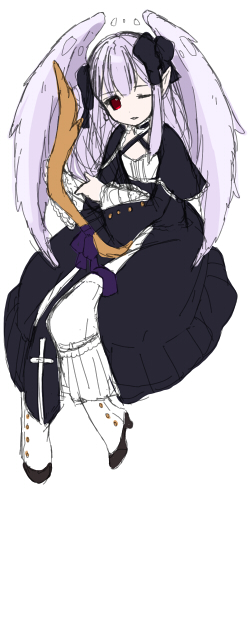 | 人物設定・容姿 | ○人物設定: ラクシュ王国のヴェーナー神殿の助祭(読師/誦経者)を務めるフェザーフォルクの娘です。 新王国歴510年、前夫に早逝された母は、生まれたばかりのリーンを連れて訪れた ラクシュ王国の首都フレデリカの祭典で出逢ったグラスランナーの旅の吟遊詩人と熱愛の末、再婚します。 しかし、新王国歴515年の事件で、グラスランナーの養父が王家の秘宝を盗んだ嫌疑をかけられて出奔し、 生活に困窮した母は、ヴェーナーの祭典の日にまだ幼なかったリーンをヴェーナー神殿に託し、 某貴族の愛妾になってしまいました。 その後、しばらく神殿で育てられ、歌唱や楽器演奏、医術等の手解きを受けるうち、 夢に顕れた運命の神ヴェーナーへの信仰に覚醒しました。 待祭(祭司見習い)として修行する傍ら、夢に隠された運命神の神意を読み解く夢占術も学びはじめました。 [→ 一般技能: ヒーラー技能1/ドリームプロフィット技能2] 新王国歴521年、12歳で神殿の助祭に昇格したリーンは、神殿の司祭より 散逸してしまった歌曲集『ラクシュ・ロマンス』の断章の回収を密かに命じられ、 ラクシュ王国を拠点に活動している旅芸人一座の一員として大陸各地を回りながら、 失われた王家の秘宝に関する情報を集めています。 [→ プリースト技能1/バード技能2] 歌曲集『ラクシュ・ロマンス』を取り戻し、養父の無罪を立証すれば、 養父が帰ってきて母と仲直りしてくれるものと健気に信じています。 ○セッション参加回数:19回 (成功:19回/失敗:0回/1ゾロ:14回) ○近況報告 [新王国歴529年2月ー529年12月]: @【セッション273】から帰還しました。 ファリスの聖戦士ウルリックさんと黒龍闘士ガラさんも英雄候補として注目しはじめました。。 A【セッション270】から帰還しました。 B プリ―スト技能3→4 C エピックメーカー技能3→4 ○パーソナル・クエスト: @ 語り継ぐにふさわしい英雄譚をつくりヴェーナー神に捧げる。 A 散逸した『ラクシュ・ロマンス』の断章を探しだし、養父の無罪を証明する。 ○容姿: (→母譲りの容姿) @ 白菫色の翼と同色の長い髪、深緋色の瞳。 A 鈴の音色のような透明感のある声 B かなり小柄 (人間の子どもくらい) C 烏羽色のゴシックドレス D ヴェーナー神の聖印(竪琴)を模った銀製の耳飾り E ドレスと同色の髪留めリボン F ふだんは片目(左眼)を閉じています。 そのため「その右眼は現世(うつしよ)を、左眼は幽世(かくりょ)を視ている」と噂されています。 ○誕生日:新王国歴509年3月3日 | |||
