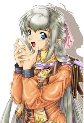 | 人物設定・容姿 | 【背景】 父ライト(人間)、母ティアラ(エルフ)。上に6人の兄がいる7人兄妹の末っ子。 三男が生まれた後,『次こそ女のコを』と意気込んでいたが三つ子(男ばかり)が産まれてしまい, 半ば諦めかけていたが,一縷の望みをかけた7人目にようやく女児(ティアット)が生まれた。 幼少のころ一度死亡。蘇生費用で財産喪失。さらに不足分の肩代わりの条件のため母親と別離。 家がビンボーなので、支度金が600Gしかなく、装備品も貧相なものになってしまった。 父ライトと兄6人(長男以外帰ってこないこと多。)と同居中。 キャンベル市外、イレーネの滝取水塔付近の平屋建て木造建築、築50年以上(推定)に居を構えています。 学者の卵として勉学に励む傍ら、とある老導師を師事し、一人前の魔法使いを、賢者を目指しています。 ・・・というのがキャンベルにいた頃のお話。 ある晴れた日の午後,キャンベルの老先生が切り出しました。 「我が友が助けを求めておる。行って助けてやってくれんか?」 老先生いわく,『賢者として優秀』であり,『会った者がすべからく一目置く男』であるという。 そして,その『友』を助け,『新しい先生』として学ぶことで,ボク自身もより高みにあがれる,と。 老先生の太鼓判もあり,新しい環境で学べることに心引かれ,二つ返事で承諾しました。 そしてニューゲートの市街。 ・・・果たしてそのヒトは困っている様子でした。ついでにいうと,ボクも困りました。 玄関を入ると目の前には異質な空間が広がっていました。 寝室だか応接室だか書斎だかわからない廊下。 床から積まれた書物が空の本棚より高くなっている書庫。 薬品調合と調理を兼ねていると思われる危険な台所。 『・・・どうやって暮らしてるんだろう。この人・・・。』 「ようこそ。お前さんが新しい家政婦かな?導師から話は聞いてるぜ。」 「いえ、ボクは・・・。」 「いやぁ・・・ちょいと掃除を忘れたらこんなんなっちまった。はっはっはっは。」 涼しい顔でそう言う『新しい先生』。 ほんとに助けが必要なくらい困ってるんだろうか?いやその前に『家政婦』ってなに?まさか老先生ってばボクを売ったの? いや待て。老先生はそんなことはしない。お互いの意思の疎通がうまくいかなかった?それとも、コイツの勝手な解釈? こんな話聞いてないから帰ってもいいよね・・?イヤ・・帰るのはいいケド,コイツ,老先生に文句言うかも・・・。 そ、それにこの期に及んで尻込みしたら何かかっこ悪いし・・・。 「まぁ、部屋はいくらでも空いてるし,勝手に使うといい。」 す、住み込み?!・・まぁ何処で生活するかもまだ決めてないんだけど・・。 というか部屋の入り口ってどこ?あ、これか?扉。一応開く程度にはスペースとってあるんだ。 ・・って変なお札貼ってあるし,ちょっと隙間あいてるぅ・・。 ・・・・(うずうず)(ちょ、ちょっと見てみようかな?^▽^;)・・・。 ここに至って,好奇心がむくむくとわきあがり、そっと隙間から中を覗いてしまいました。 「あ、その部屋はあぶな・・・」 時すでに遅し。 扉の隙間から中を覗いたボクの目と部屋の奥に佇む何ヤツかの目が合ってしまい・・・。 【容姿と身体特徴】 ・身長163cm体重54s ・髪 :銀 ふくらはぎに届く長髪。 ・瞳 :青。 ・1人称:ボク(ごくたまに、お偉いさんに会ったときとかに「私」)。 ・眉毛:太。 ・視力:やや悪。 (その他) ・服装は動きやすいもの。露出の少ないもの。ミニスカなど穿かない。装飾品は髪留め程度,化粧はしないかごく軽く。 ・掃除好き。強迫観念:掃除(CP-2くらい?)。毎日玄関先をホウキで掃いている。スタッフ持つよりホウキを持っている時間がはるかに長い。 ・書庫に篭る。機嫌が悪いときにはさらに篭る。人それを「立てこもり」と言う。 ・天気が良いと外で本を読む。 ・お風呂。入浴時間と湯温は普通。日によって複数回入ることもある。夏は水浴び。野宿では沐浴も。 ・常に首全体を覆うような太めのチョーカーをつけている。 | |||